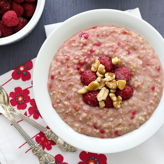 Raspberry Oatmeal with Steel Cut Oats